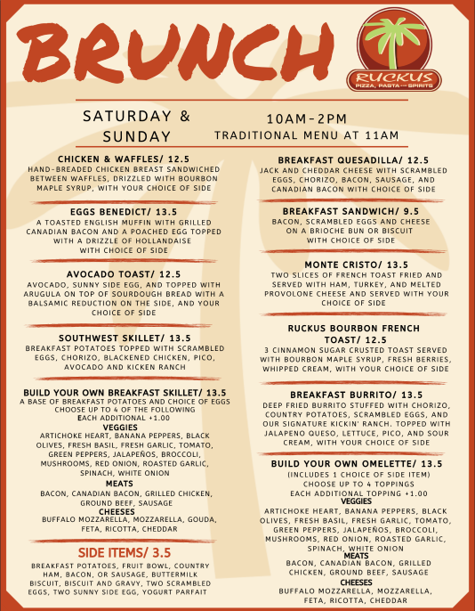 We invite you to bring your friends, family, and holiday guests to Ruckus Brunch. Let's make this holiday season memorable with delightful food, warm company, and the joy of sharing. We can't wait to see you here!